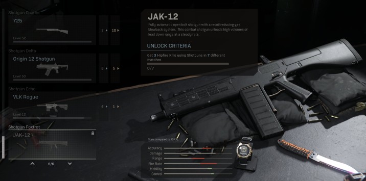 This is not a very difficult challenge. Simply hop into Modern Warfare multiplayer and equip any shotgun you have unlocked. We recommend the Origin 12 since it’s severely overpowered right now and has great hipfire accuracy. After you get three hipfire kills in seven different matches, the JAK-12 is fully yours to use and level up.
