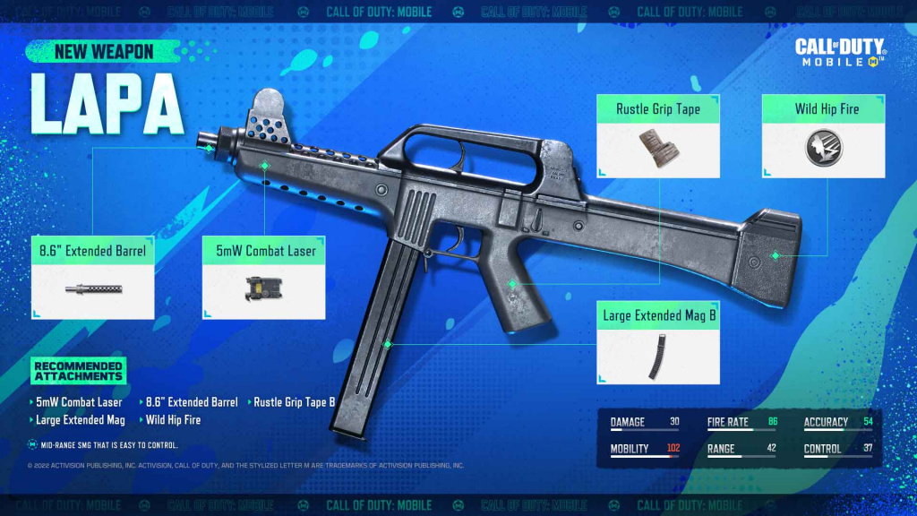 Here are the stats for LAPA SMG in Call of Duty: Mobile: