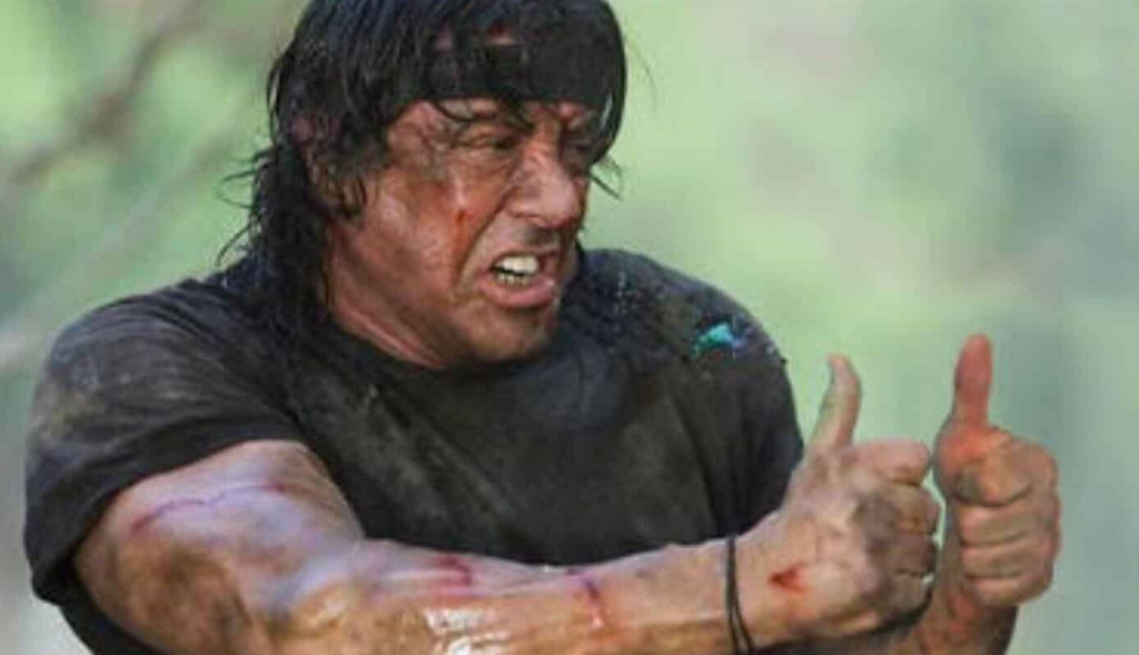 The image clearly showcases John Rambo’s combat knife, as well as a huge bullet chain the character always carries around, not to mention the red headband.