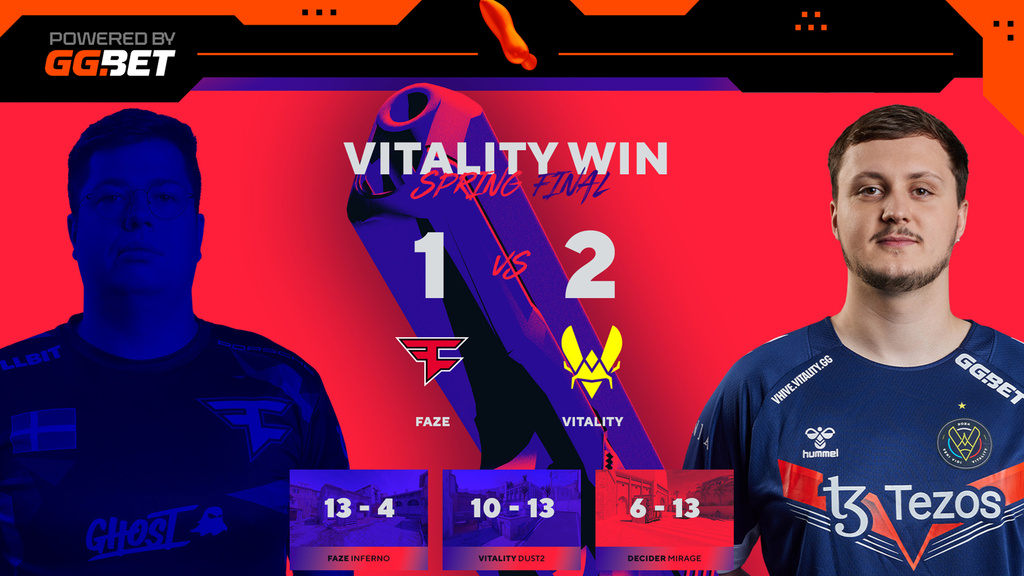 FaZe then bounced back with a round win, and in the 22nd round, with lesser weapons, Vitality put themselves onto match point, 12-10. On match point, Vitality called a tactical pause and then finished off FaZe with a 13-10 win on Dust2.