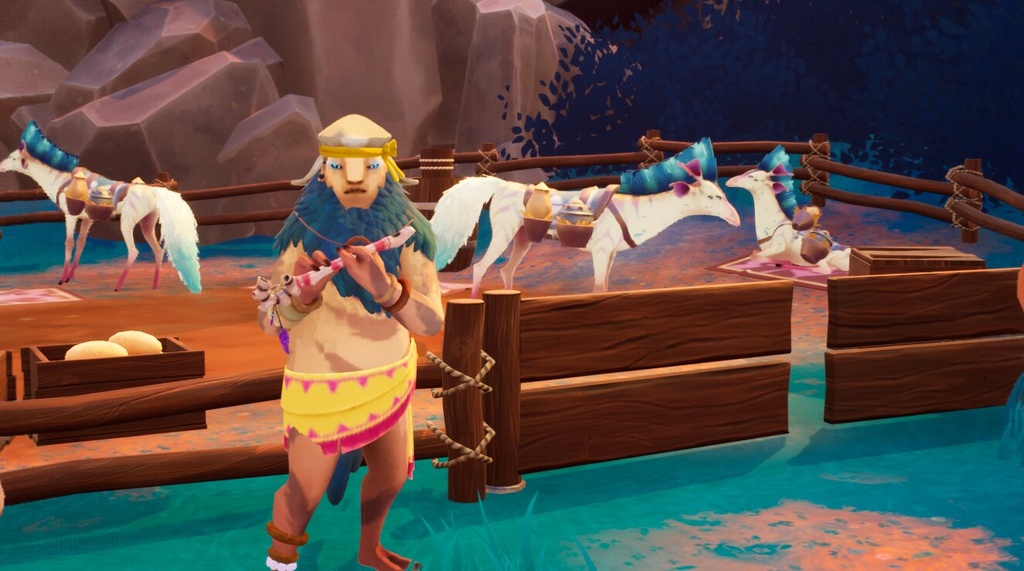 Nim’ar will refer Victoria to Sebb’ti, but before she leaves, he hands her a Flute, which will be helpful when learning how to tame creatures with Sebb’ti. The Naam shepherd they’re looking for is found in the mountains south of the village, where they can take the main path leading towards the mountains.