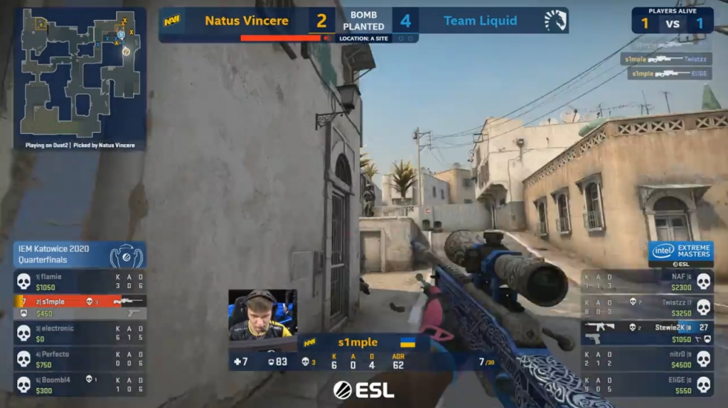 s1mple 1 vs. 4 clutch in the post-plant | Round 7 | DustII | vs. Team Liquid