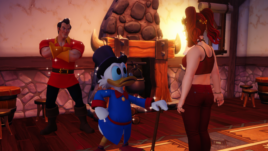 You need to mingle with and speak to Rapunzel, Scrooge McDuck, and Remy to wrap this quest up. We did run into a bug where Remy wasn’t appearing at the party, but talking to Remy and asking him to hang out with you before returning to the lodge did allow the quest conversation to take place as needed. Return to Gaston once more, and this will complete Center of Attention.