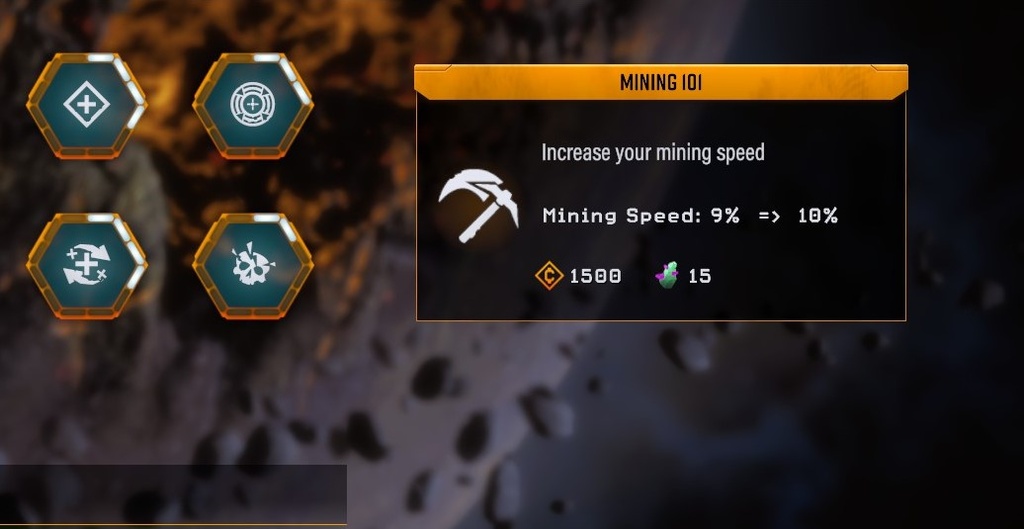 Fortunately, you can make permanent upgrades by heading to the Main Menu and selecting the “Upgrades” menu. Here, you’ll be able to purchase pemanent upgrades, inclusing ones for your Mining Speed.