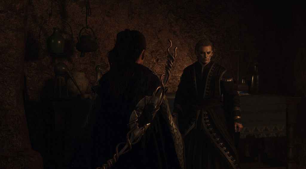 The mysterious figure that has been guiding you throughout your adventure will then appear, casting a spell on Ambrosius which will make him change his mind. He’ll then give you the weapon to deliver to lord Phaesus.