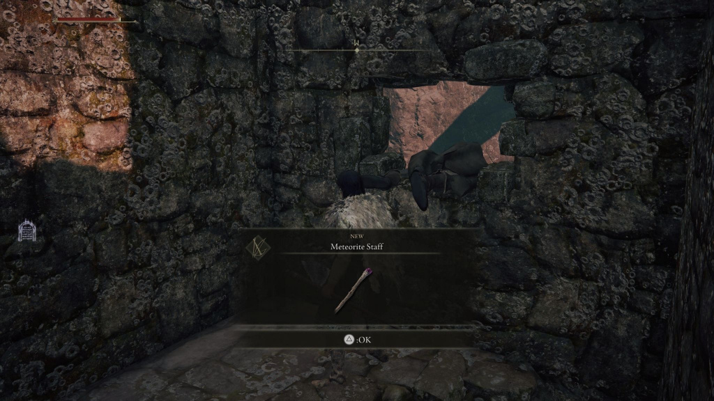 Once they are taken care of, loot the nearby corpse on the wall to get the Meteorite Staff. Now, for it to be most effective, you must level up your Intelligence attribute to 18.