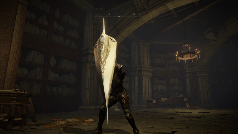 This is right next to the marble statue you need to climb to reach the next section. Look to the left, and you’ll notice a large open area that can be accessed by jumping onto a thin stone ramp attached to the bridge. Jump off the railing to the ramp, and you’ll find the Dueling Shield on a corpse behind the stone slabs to the right.