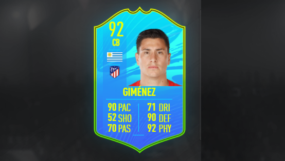 The José María Giménez FOF card boasts impressive stats that players valua in a CB. Right off the bat, having a pacey defender with 87 Acceleration and 93 Sprint Speed is always a plus.