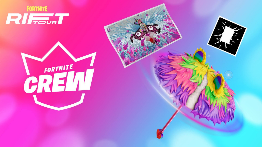 Everyone who is currently an active Fortnite Crew subscriber will be eligible to earn three exclusive Rift Tour items available only to Crew Pack members.