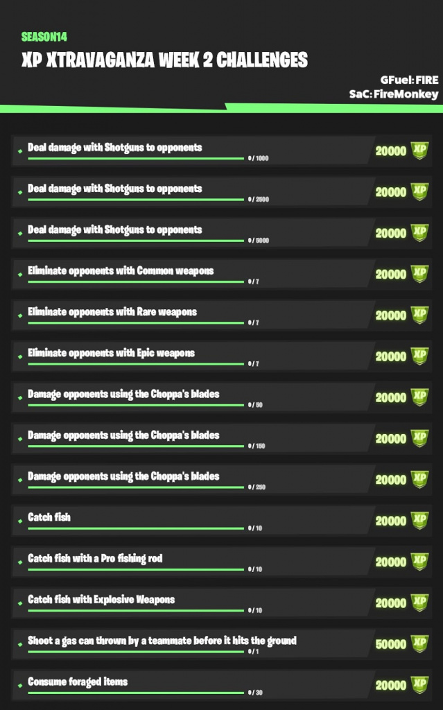 Here you have all XP Xtravaganza challenges for week 2 in Fortnite.