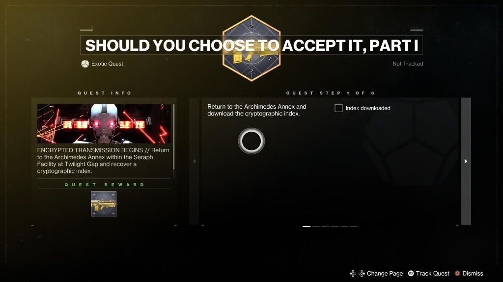 The first in line for this series of exotic quests is “Should You Choose To Accept It Part I,” and here’s how you can complete it.
