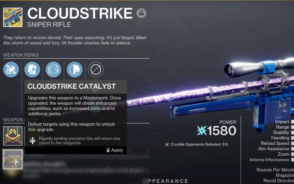 The Cloudstrike has always been a powerful weapon, thanks to its Stormbringer trait that allows it to summon a deadly lightning storm. Now, because of the catalyst, it’s an even better choice for PvP and end-game PvE activities.