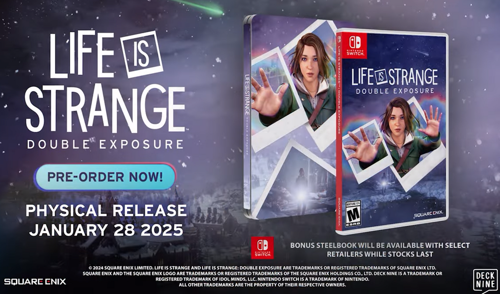 Life is Strange: Double Exposure is coming to the Nintendo Switch eShop as early as tomorrow, 19 November, a surprise announcement states. A physical release is headed to store shelves on 28 January 2025, with an exclusive steelbook available at some retailers – and it’s available to pre-order now.