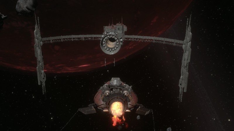 When you spawn into Marauders, you’ll first see the inside of your ship. However, once you take over as the pilot, you’ll go into third-person, allowing you to see the entire area. In the center is the main map objective where you will port; you’ll also find space junk and asteroids all around you, most of which are broken metal or sentry turrets you can destroy.