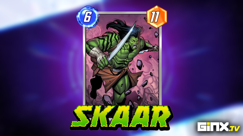 Skaar is a six-cost, eleven-power card in Marvel Snap. For every friendly card that has ten or more power, Skaar will cost two energy less. Naturally, this is quite a tall order to accomplish, as most cards with ten power or more are late-game cards that you won’t be playing until the final turns of the game. This makes things tricky for Skaar, as ideally, you want a board with several 10+ power cards already in play to allow Skaar to be played at a heavily discounted cost. Thankfully, there are several ways to get Skaar’s ability to activate.