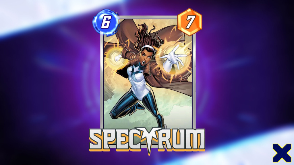 Spectrum is a six-cost five-power card in Marvel Snap with an On Reveal ability that gives plus two power to all of your Ongoing cards. Spectrum can be a great win condition in a lot of Ongoing decks thanks to the sheer amount of power she is able to add to the board. Spectrum provides a lot of unsuspecting burst to the final turn of the game, and in the right deck, it can definitely be the deciding factor in determining the winner.