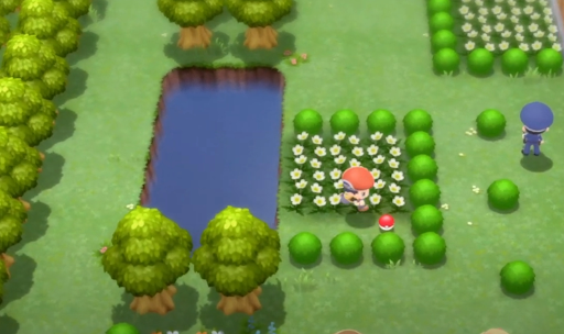 Once you’ve done that, stay in Hearthome City and go to the southern exit gate. This will bring you to Route 212, where you’ll need to stay going south. Keep running until you hit an area with some green bushes and a small pond of water. Near this pond will be an area with flowers and a Poké Ball surrounded by flowers.