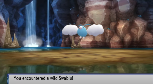 Upon visiting any of these caves, you might see a Swablu flying around in the area. If you do, then you can walk up to it and then catch it, preferably with a Dusk Ball. However, if Swablu isn’t there, then simply exit the cave, immediately re-enter and then see if Swablu has spawned. Repeat this process until the bluebird appears.