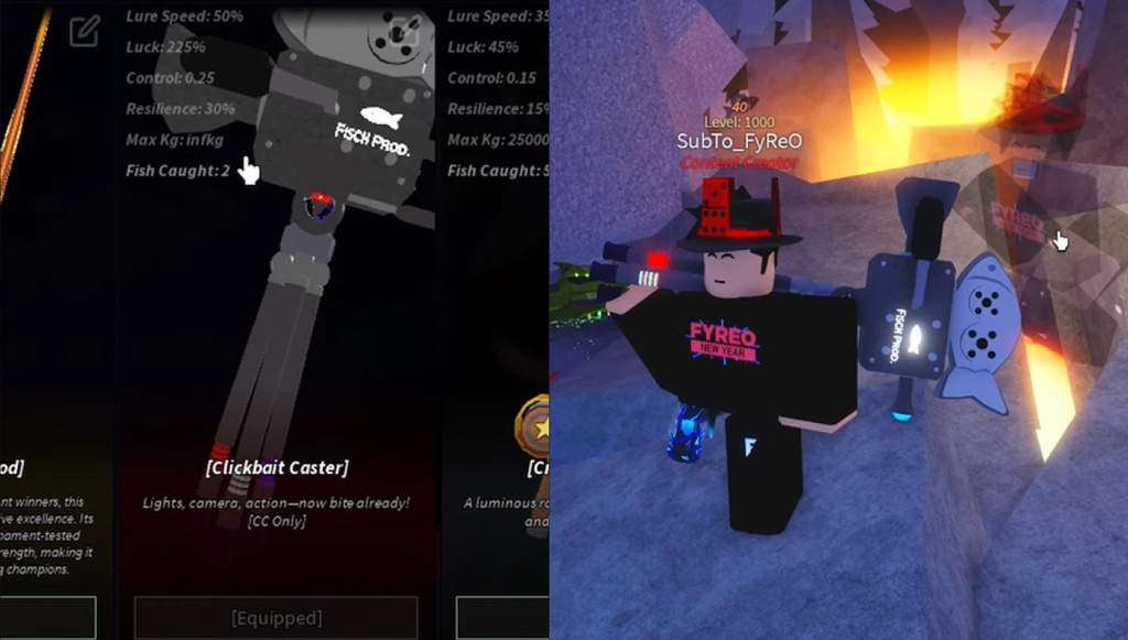 The Clickbait Caster is not available for purchase and cannot be obtained through in-game progression. Instead, it is exclusively awarded to members of the Fisch Official Content Creator Program (i.e., YouTubers, streamers, and other creators who actively promote Fisch and its updates).