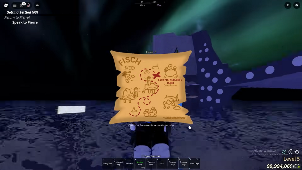 You’ll need to pay Jack Marrow 250 Cash to fix the Treasure Map in Fisch. After fixing the map, buy a GPS device for 100 Cash if you haven’t already. This device will help you navigate to the coordinates provided by the fixed map.