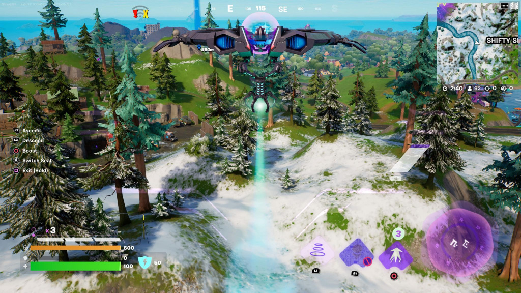 The UFOs in Fortnite are surprisingly well-detailed. Aside from the options to ascend, descend, and boost, you can fire energy attacks to do significant damage to structures.