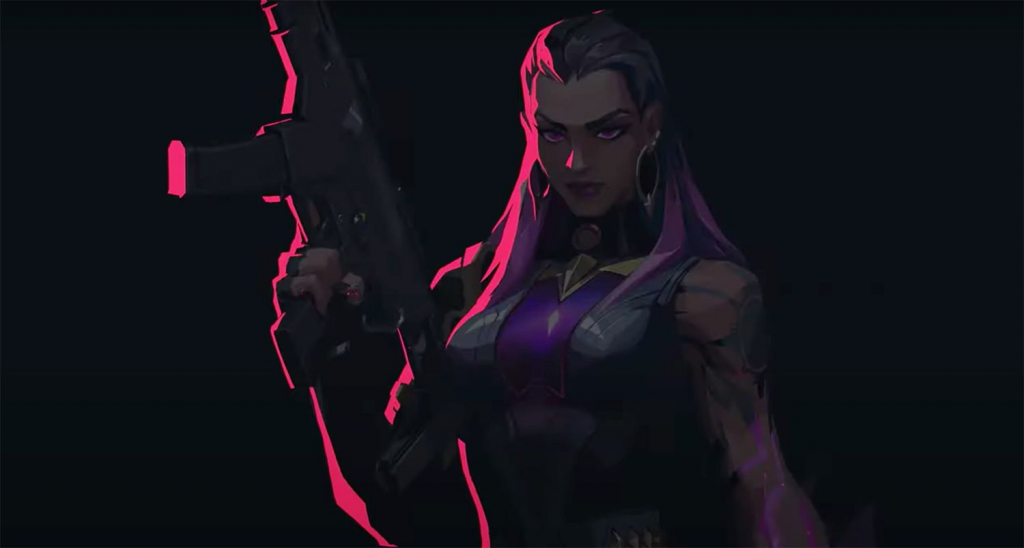 Like all characters in Valorant, Sabine sports a unique easy to identify look, wearing a purple sleeveless uniform with matching colour hair.