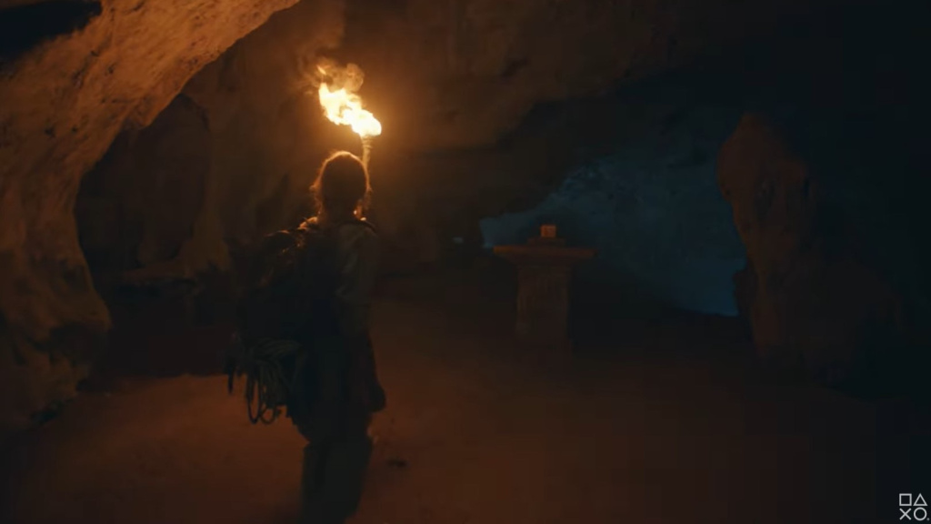 The brief clip shows what some fans claim to be a new female protagonist walking toward some kind of ancient relic in a cave with a flaming torch. The character is dressed in typical Indiana Jones-style attire, complete with a large backpack. Unfortunately, there don’t appear to be any other hidden clues in the clip. As noted by VGC, it’s possible that this character might be Nathan Drake and Elena Fisher’s teenage daughter Cassie.
